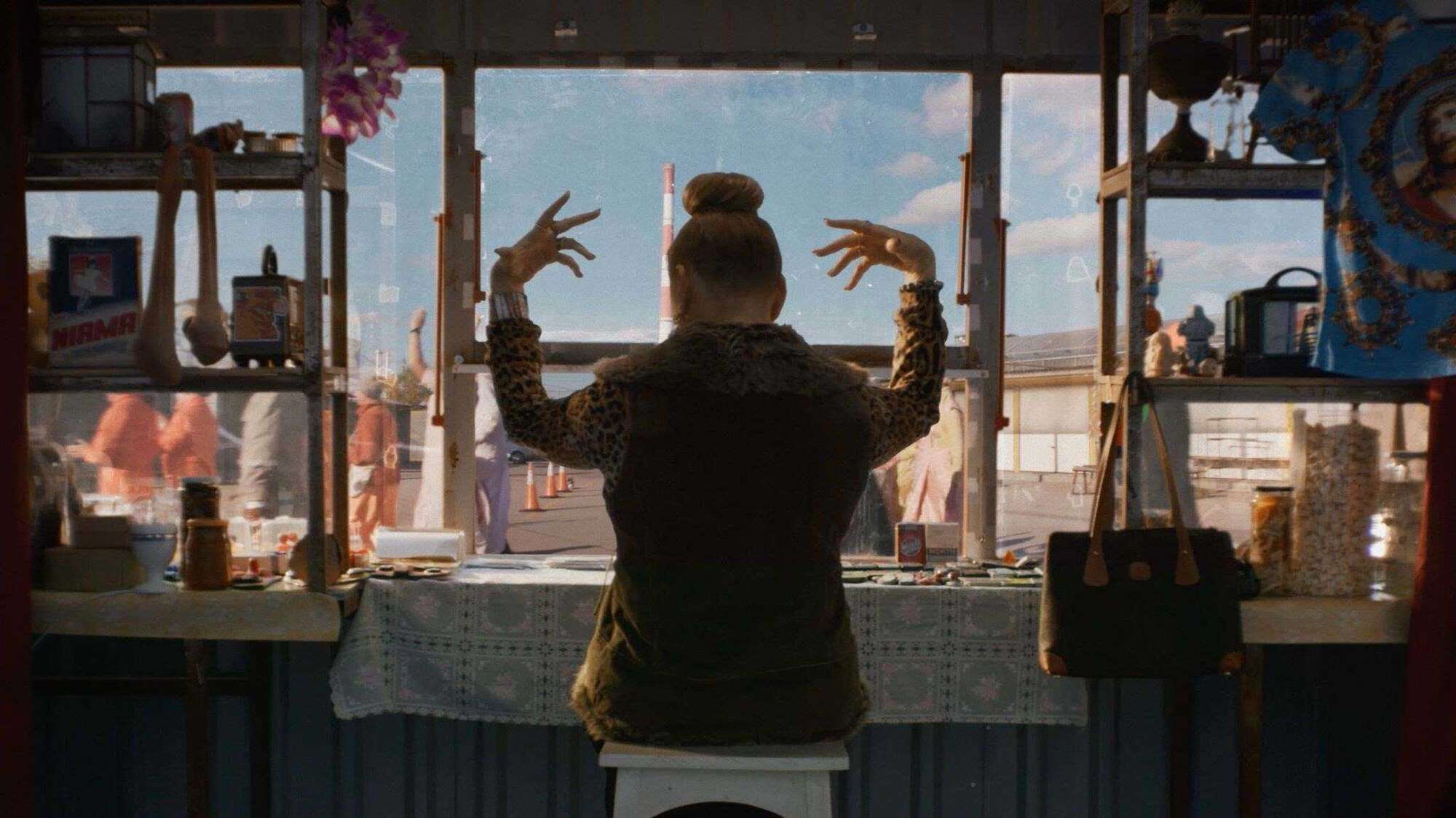 Pardavėja tuščiame turguje per savo kiosko langelį stebi atsitiktinius praeivius. „Prekės su siela, kaip žmonės kūniški, nors jos nekalba, jos jaučia skausmą. Prekeiviai kaip mediumai, per jų rankas eina prekės, nuolat keičiasi, kaip spalvoti debesys. Parduotuvė – skaistykla, kurioje prekės – tai aukos, tiekiamos jūsų geidžiančioms akims.“ – dirbtinis intelektas moters balsu blerbia iš radijo imtuvo.